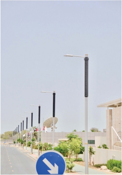Solar PV Modules vertically mounted within the lighting poles,